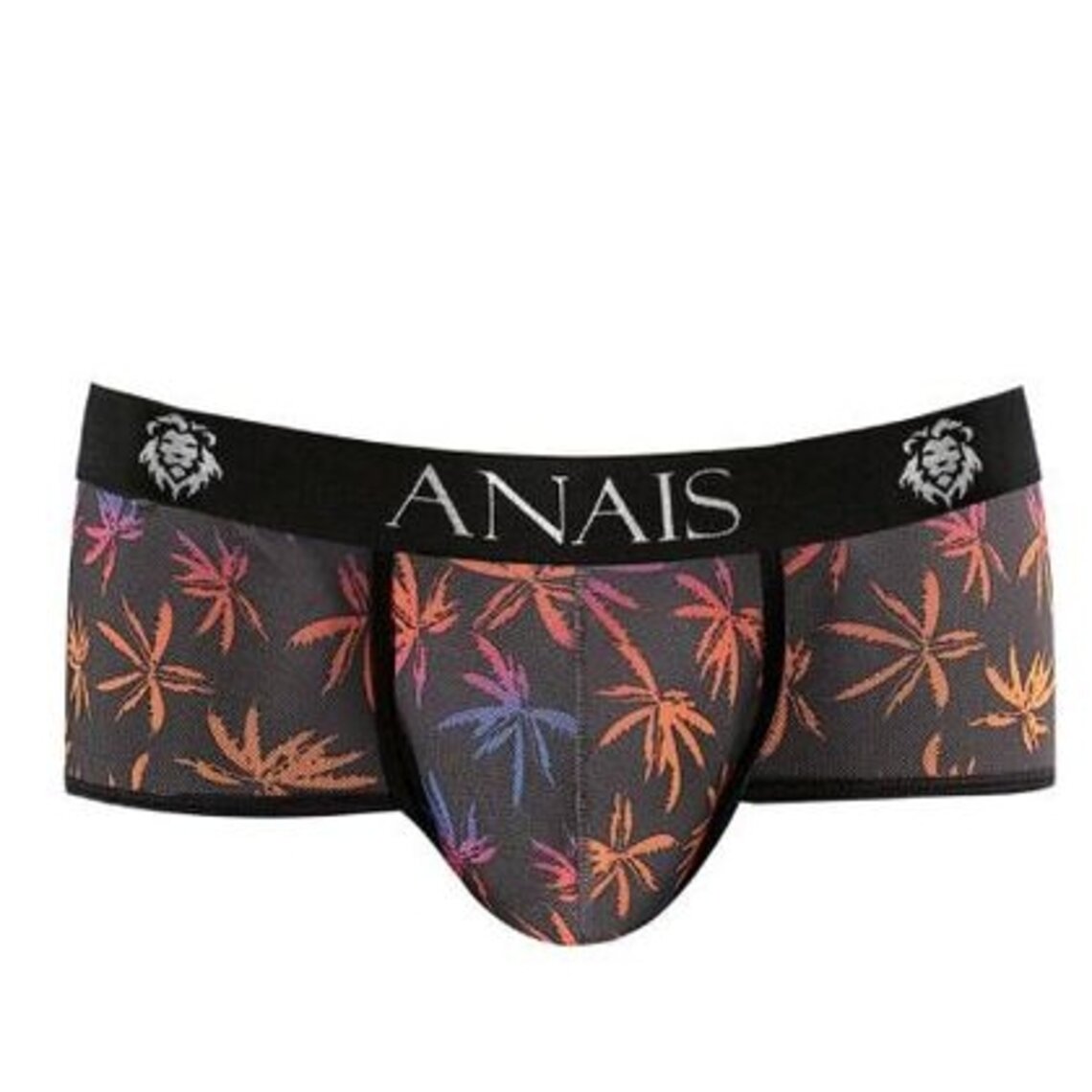 FROIDEUR Tulle noir doux avec imprimé coloré, palmiers de vacances Caractéristiques slip à la coupe sportive fait de matériaux de haute qualité jambes plus courtes ajustement parfait au corps Composition 95% polyamide 5% élasthanne Anais Apparel la lingerie la plus sexy au monde depuis 2003