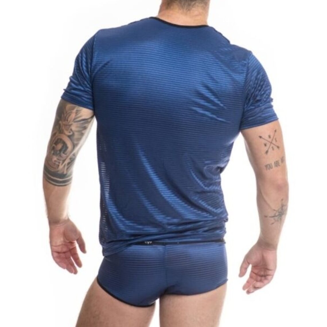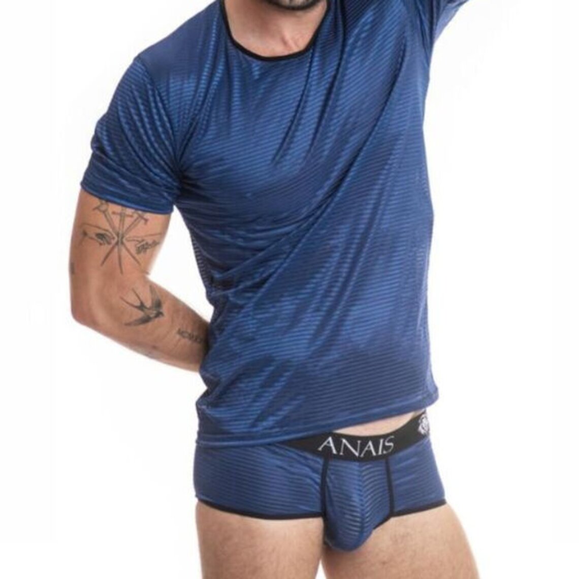 NAVAL Tulle noir à rayures verticales satinées bleu marine Caractéristiques T-shirt ajustement parfait au corps Composition 94% polyamide 6% élasthanne Anais Apparel la lingerie la plus sexy au monde depuis 2003