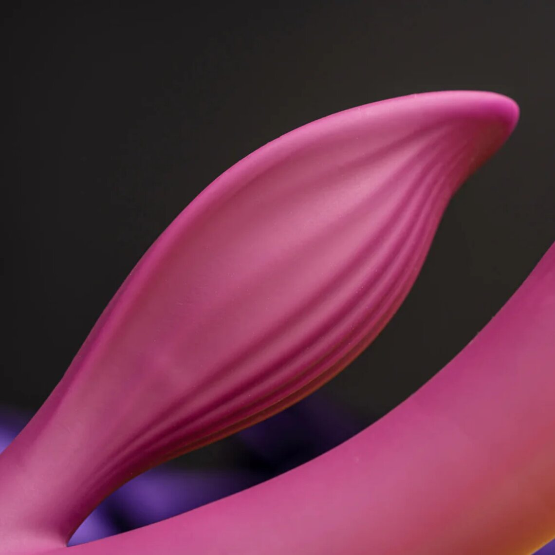 Vibromasseur lapin violet avec une tête arrondie, stimulant le clitoris et le point G féminin.