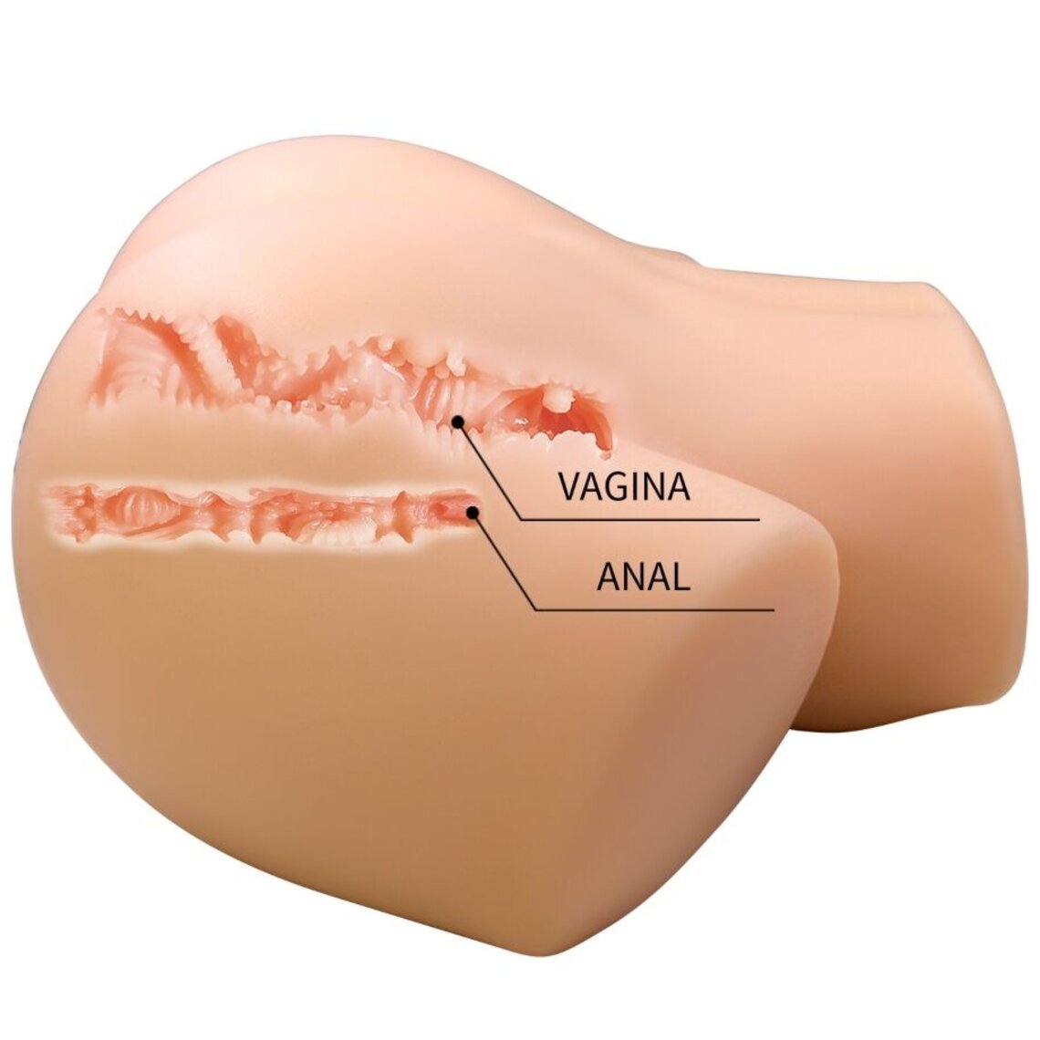 Fessier féminin léger (7 kg) pour masturbation. Deux orifices disponibles : vagin et anus.