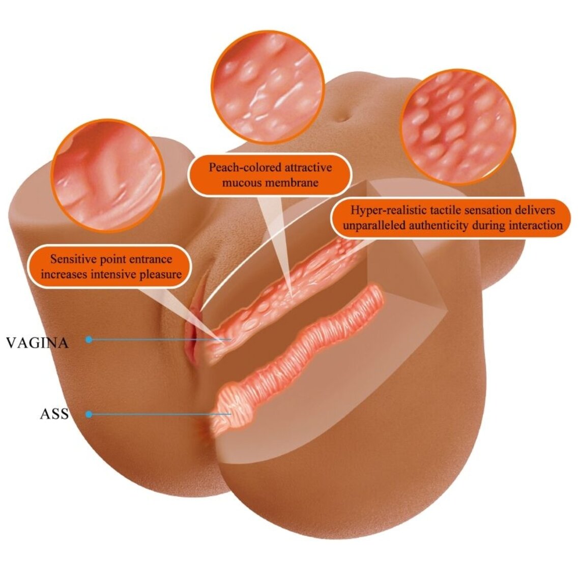 Ce masturbateur est doté de deux entrées réalistes : un vagin étroit et tortueux, garni de nervures internes stimulant chaque mouvement, et un anus étroit pour ceux qui recherchent un défi supplémentaire de pression et de réalisme. Son tunnel interne est recouvert de textures en spirale et de nodules de plaisir stratégiquement placés pour intensifier chaque pénétration et vous faire atteindre des orgasmes plus profonds.