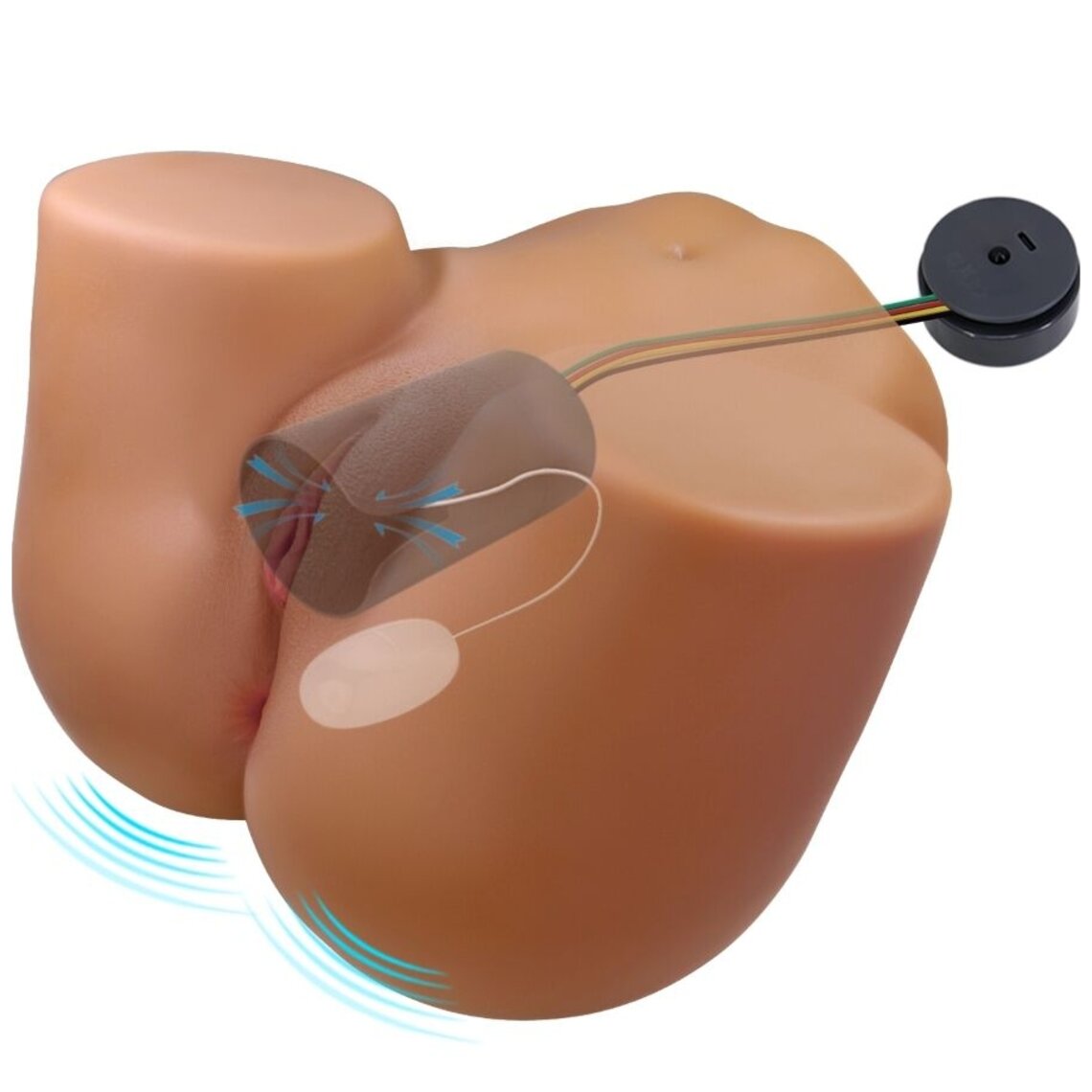 Fessier féminin pour masturbation masculine. Effet de succion et sons de gémissements. Poids réaliste de 11 kg.