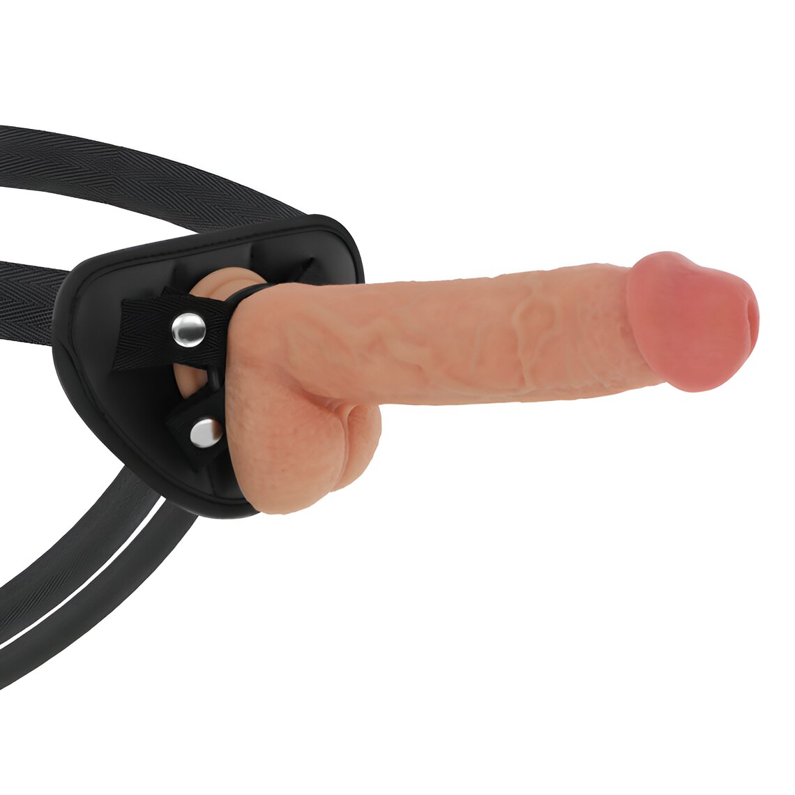 Harnais avec gode réaliste en silicone liquide et anneaux interchangeables