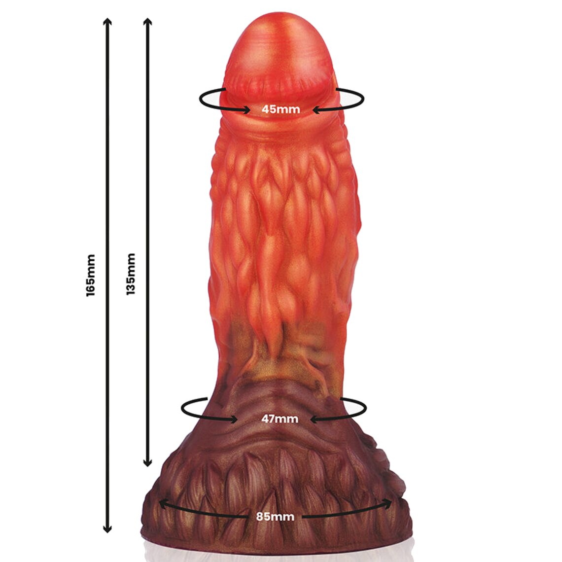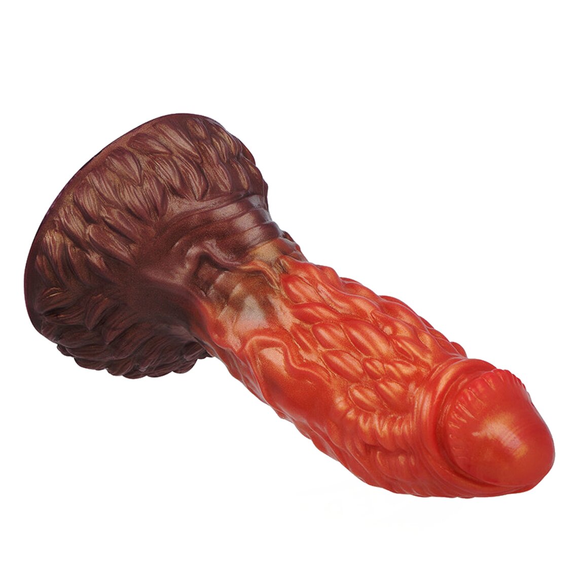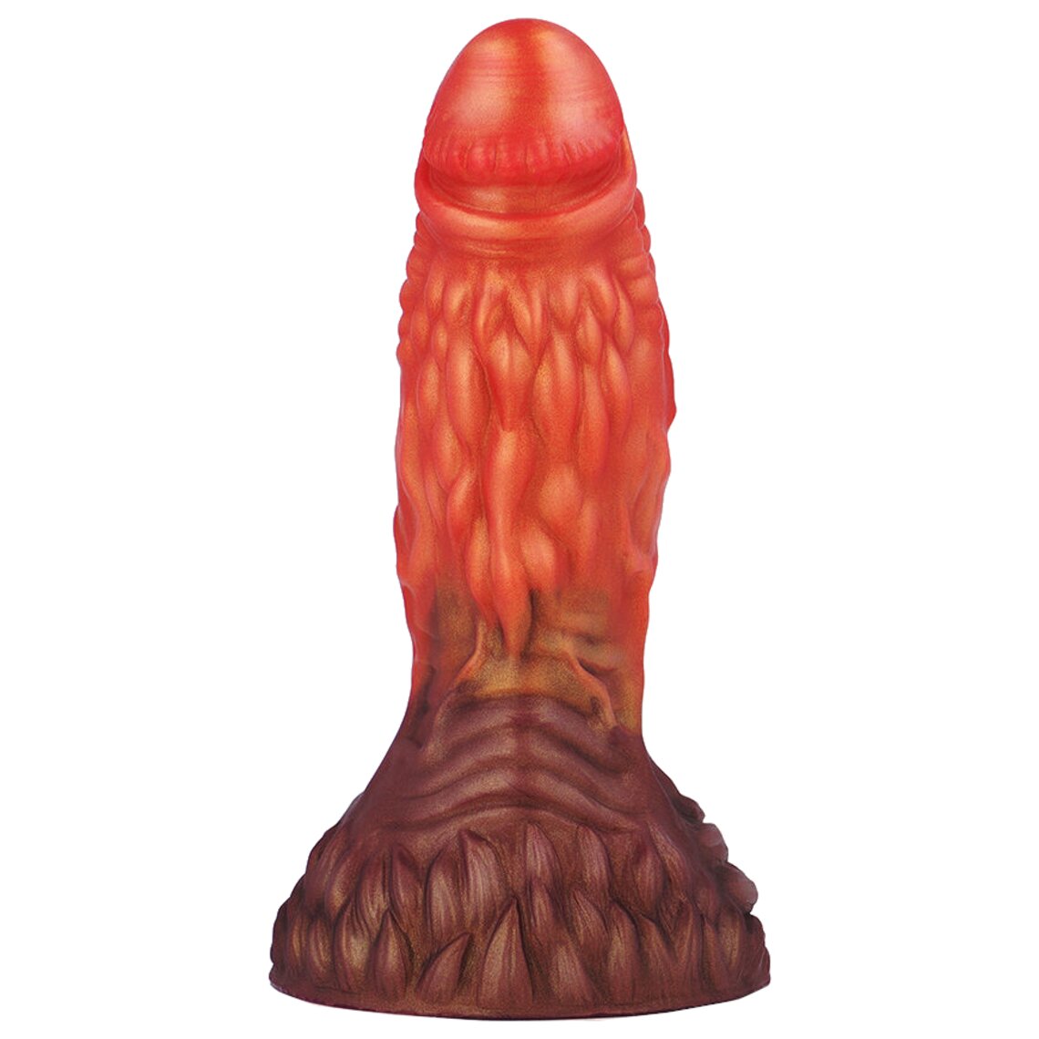 Godemichet fantaisie à l’aspect phallique inspiré des racines de la terre. 16,5 cm de haut. Bicolore : marron et orange.