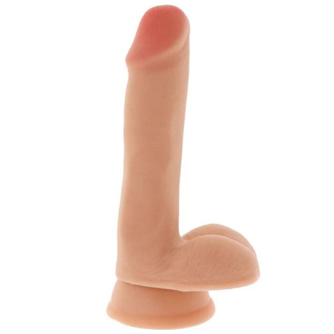 Gode réaliste en forme de pénis de 17 cm avec testicules. Conception en double densité pour un effet plus réaliste.