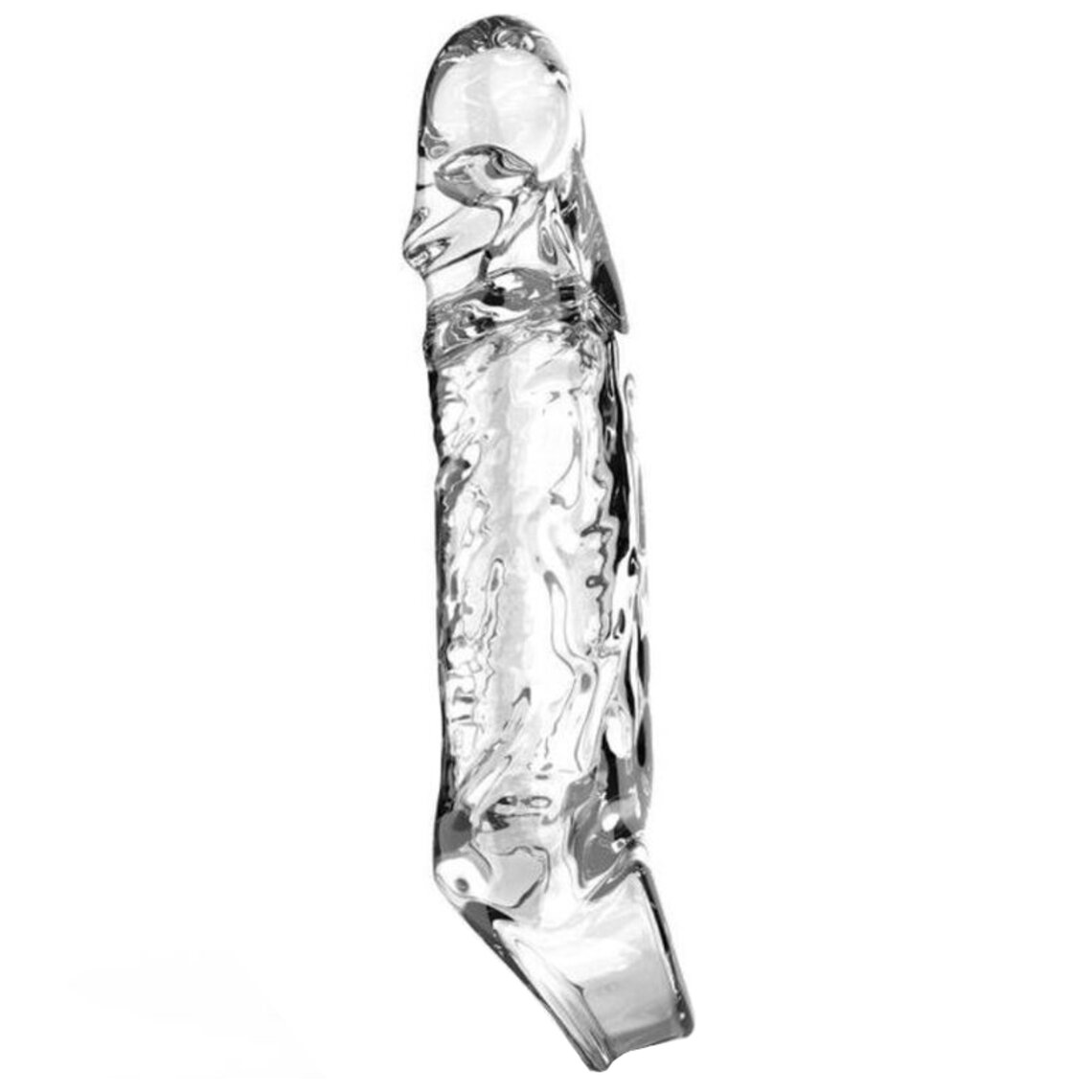 Gaine pénienne transparente de taille moyenne. Longueur : 16 cm pour plus de plaisir naturel.