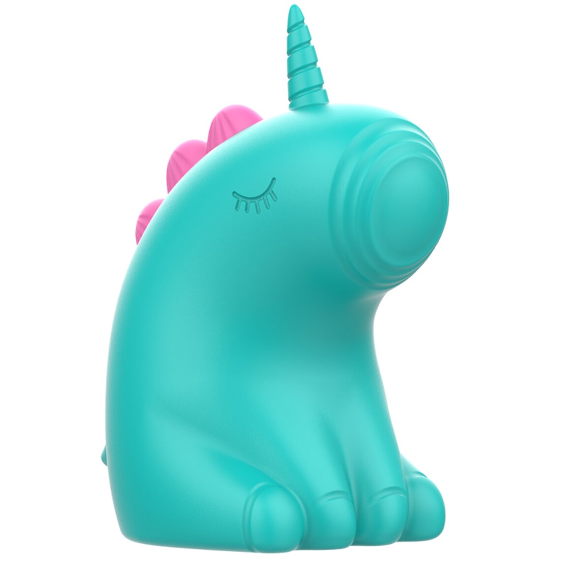 Vibromasseur ludique en forme de licorne turquoise. Stimule le clitoris par un effet de pulsation.