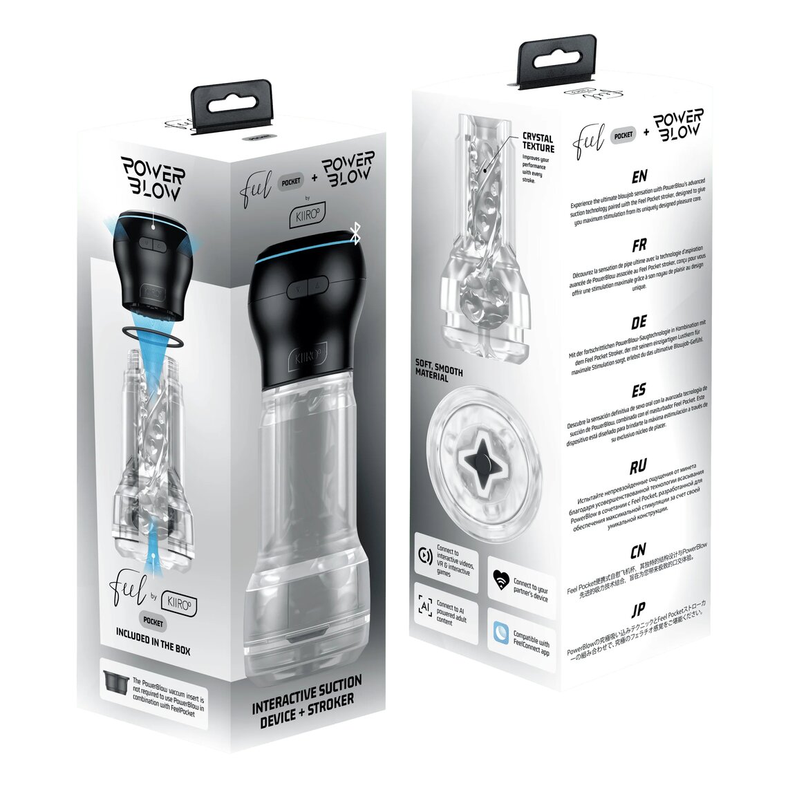 Kit masturbateur masculin Kiroo Feel Pocket Crystal avec accessoire PowerBlow. Masturbateur super élégant et discret.