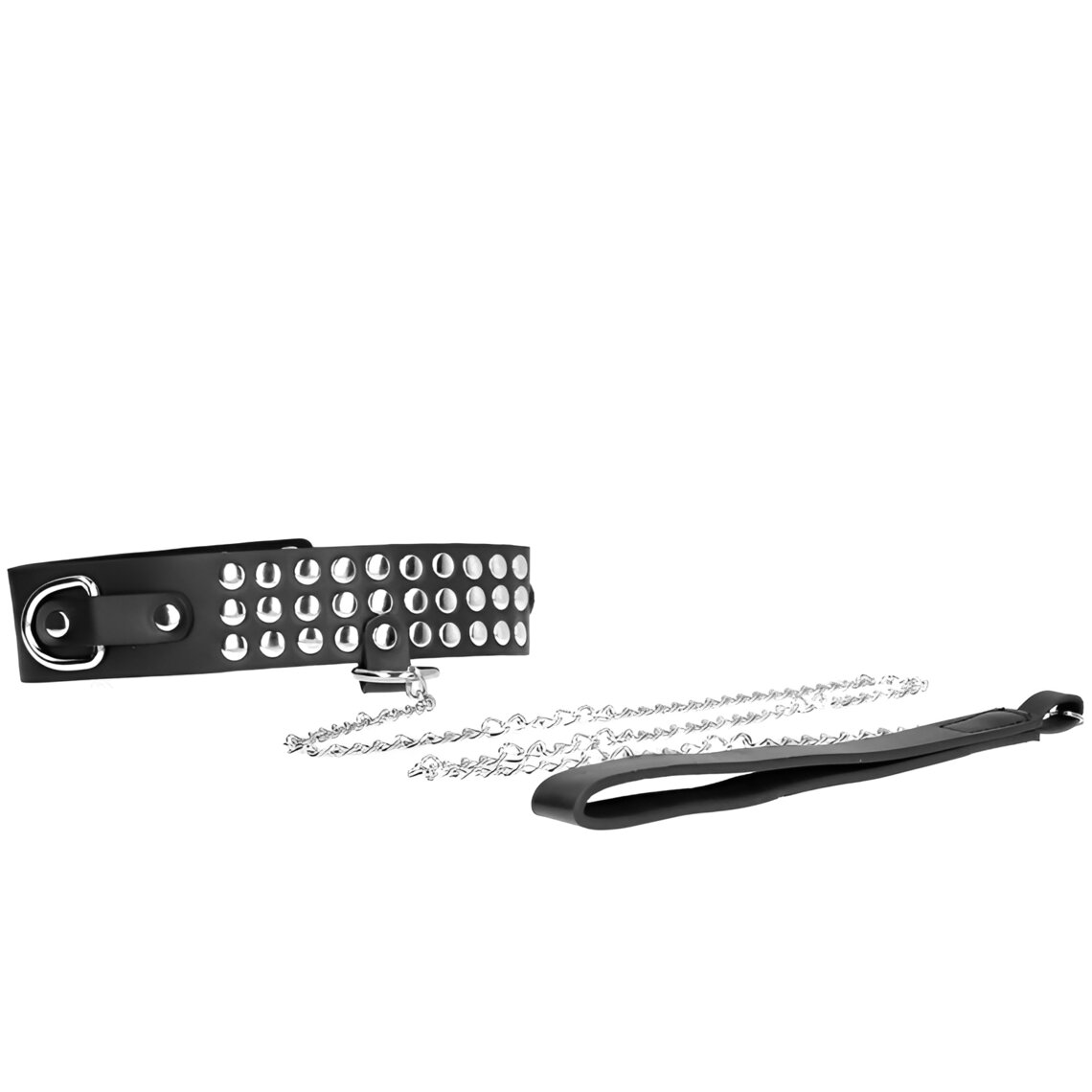 Collier noir à clous avec laisse à chaîne de 65 cm