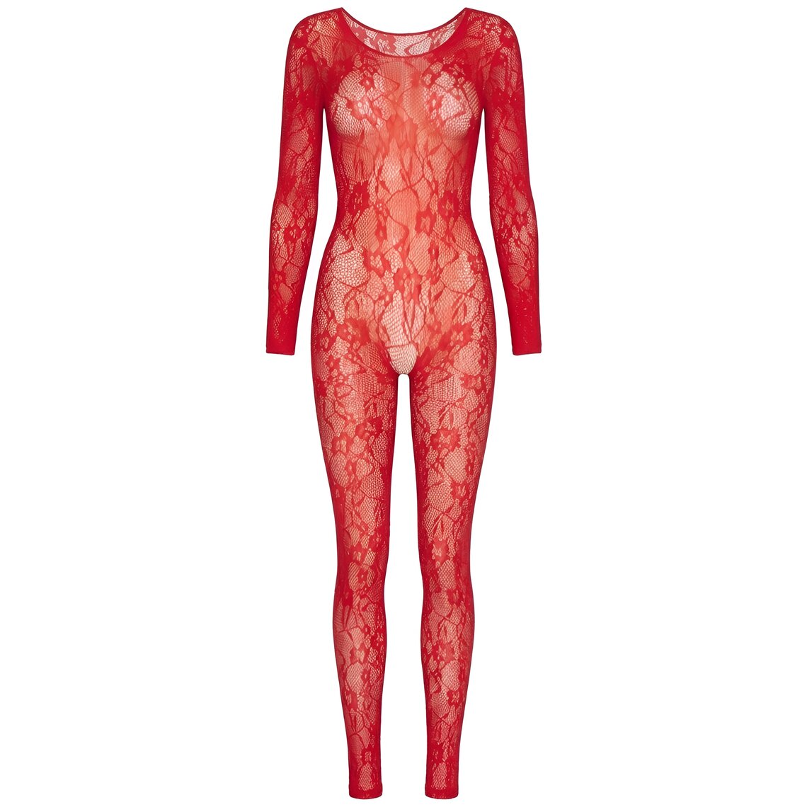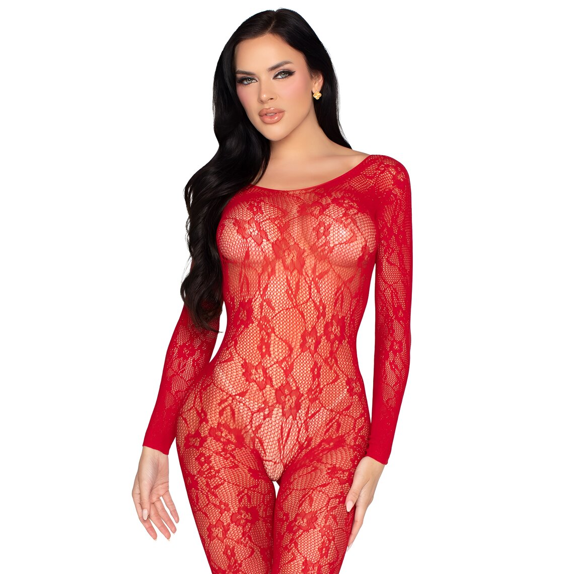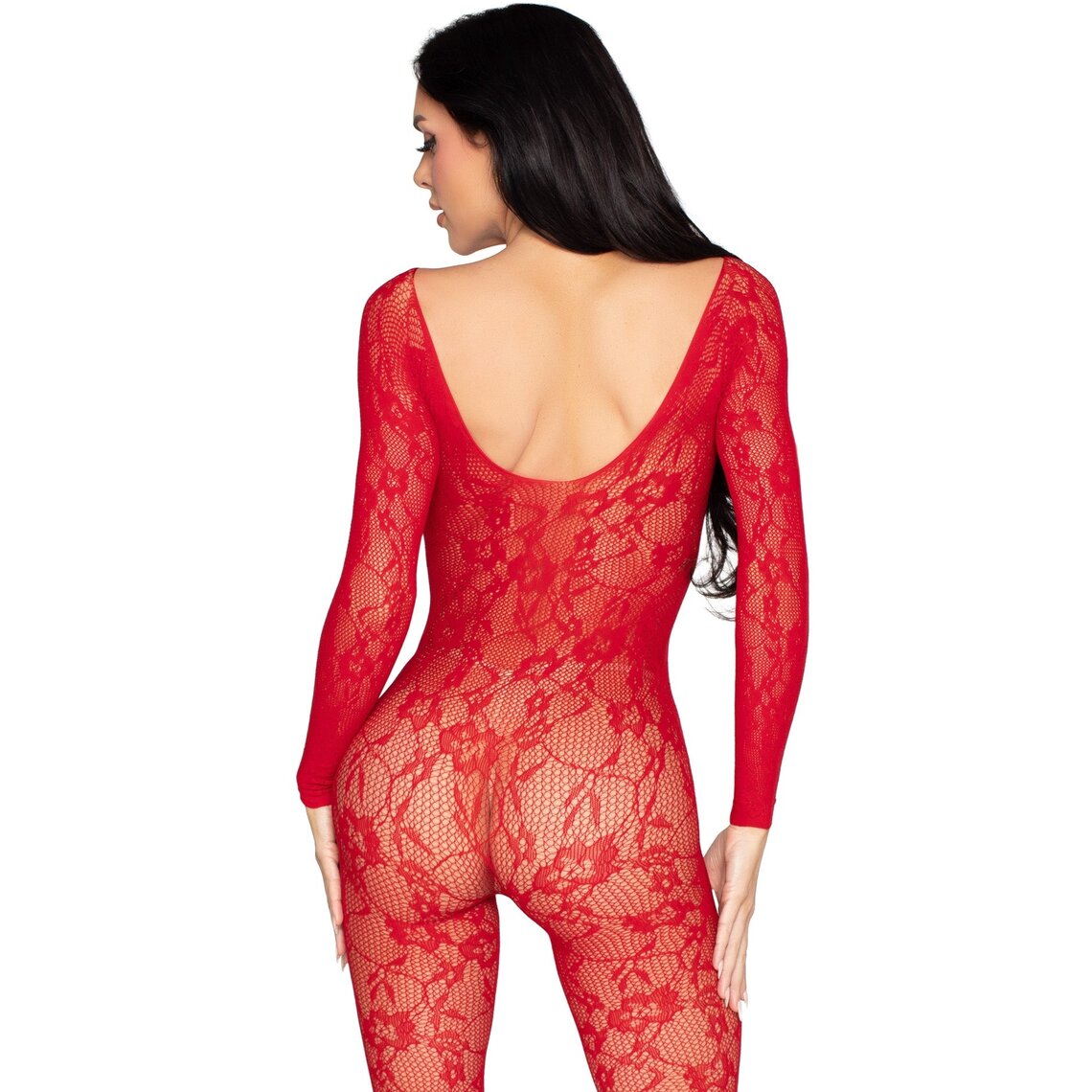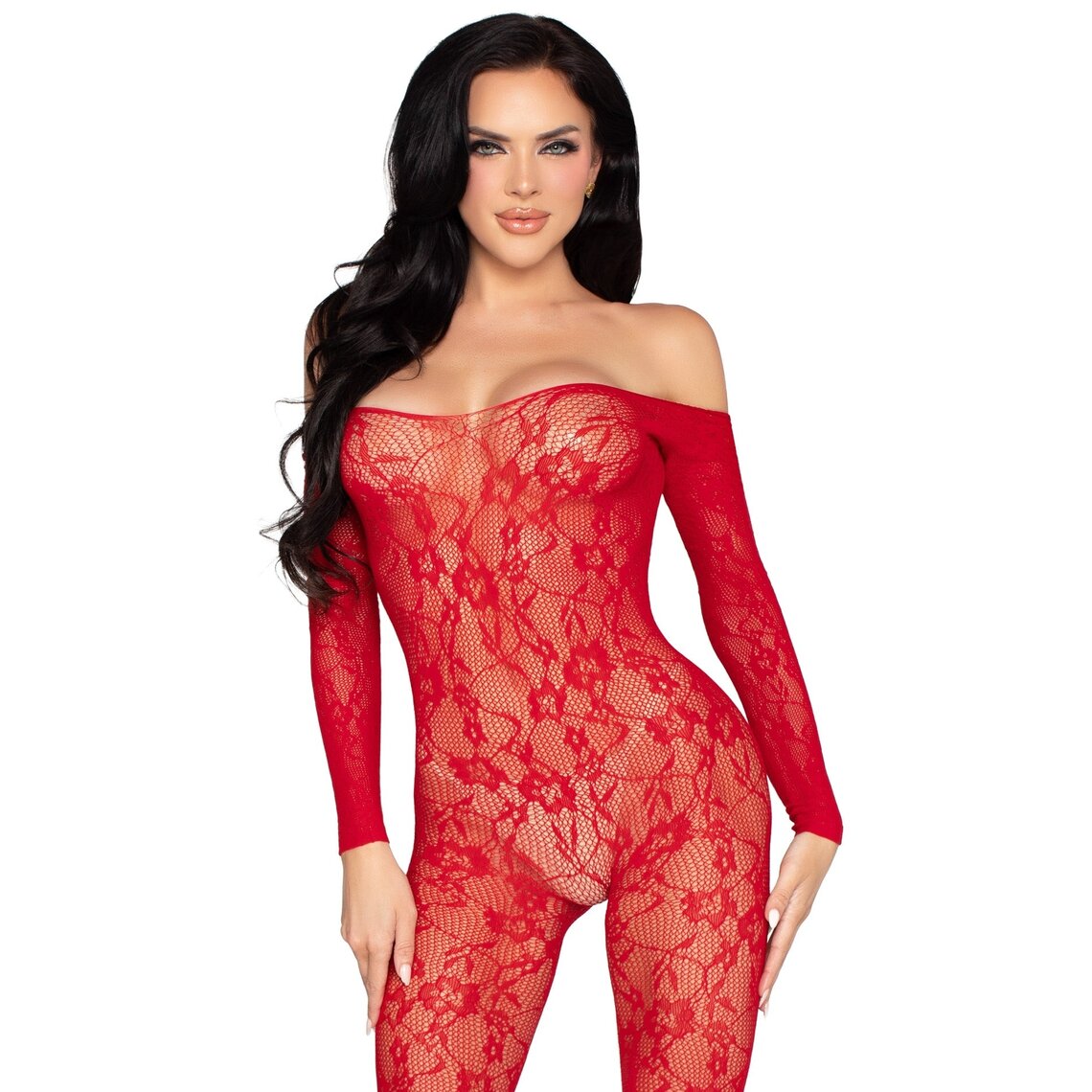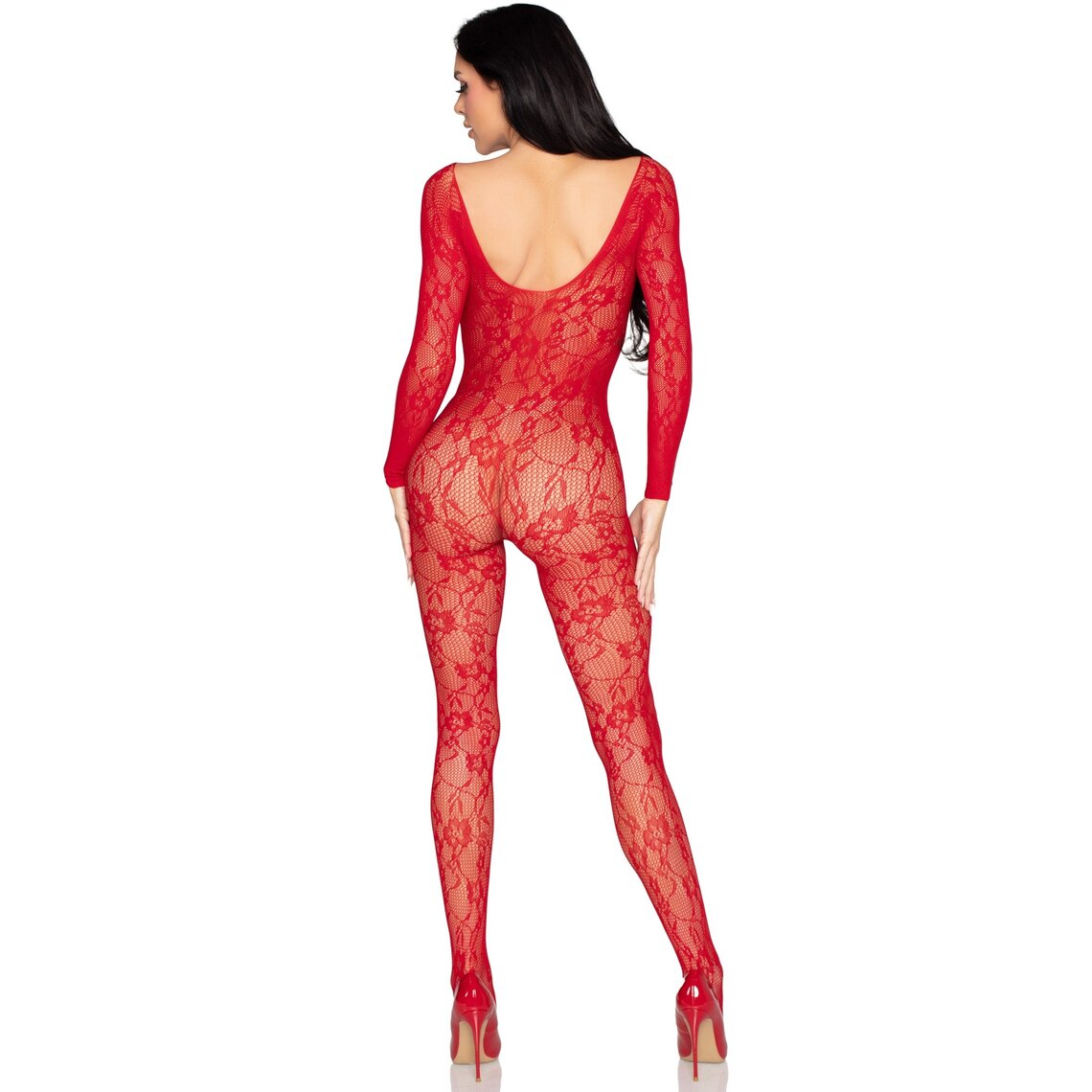 • Leg Avenue - Bodystocking en Dentelle Florale Ultra-Extensible (Rouge)