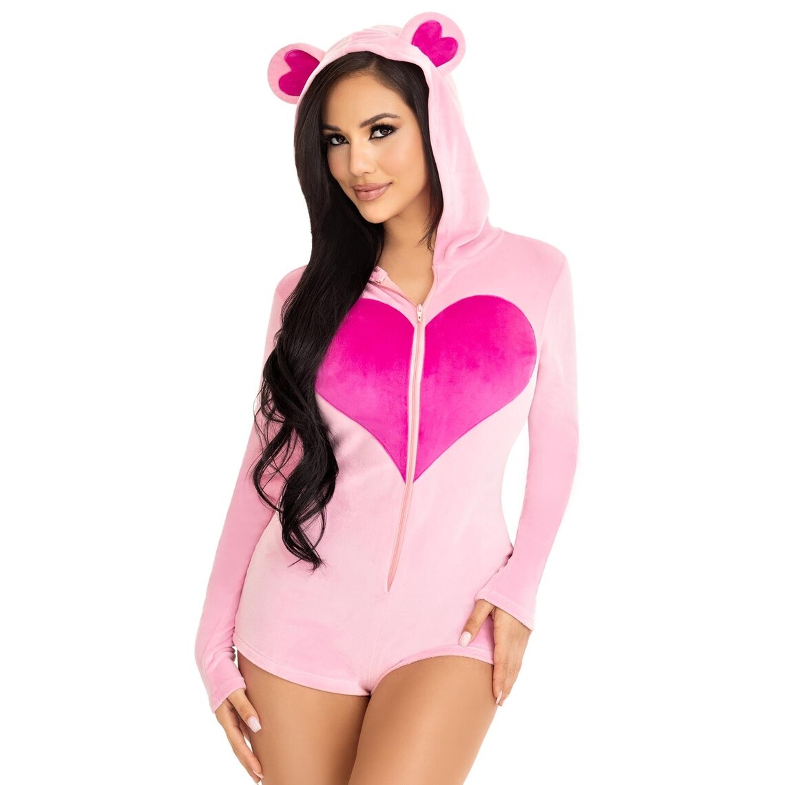Cet adorable ours est vêtu d'une combinaison en velours ultra-doux avec une fermeture zippée et des détails en forme de cœur, ce qui en fait le choix idéal pour les festivités du carnaval ou comme vêtement de nuit confortable.