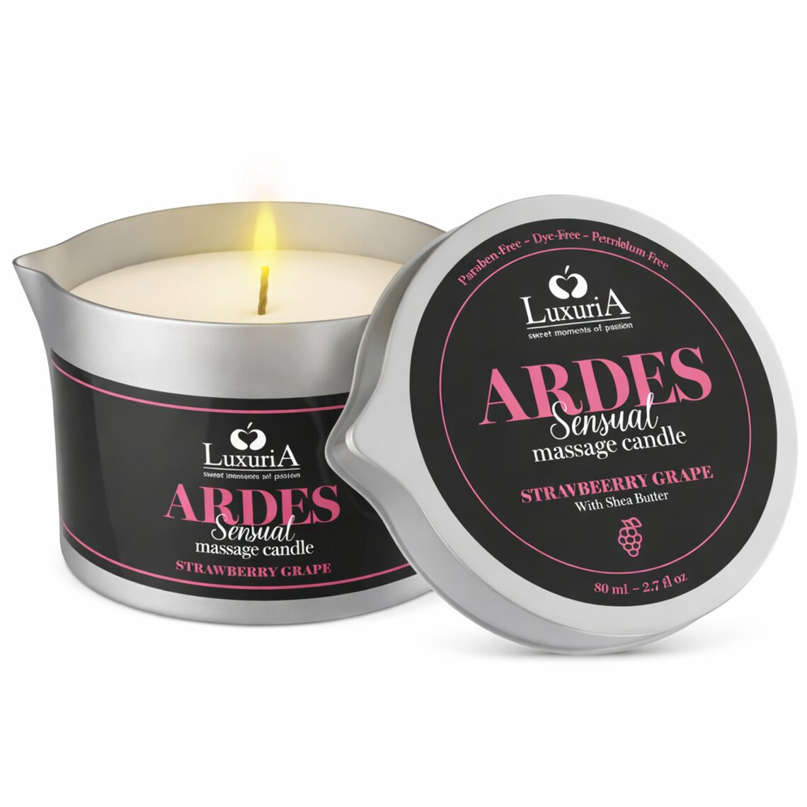 • Description du produit  Luxuria Ardes - Bougie massage sensuelle raisin fraise
