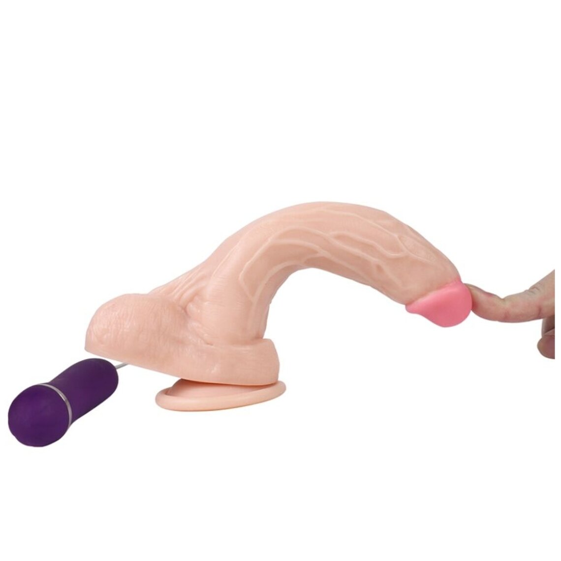 Vibromasseur avec ventouse et forme réaliste de pénis de 21 cm. Télécommande filaire.