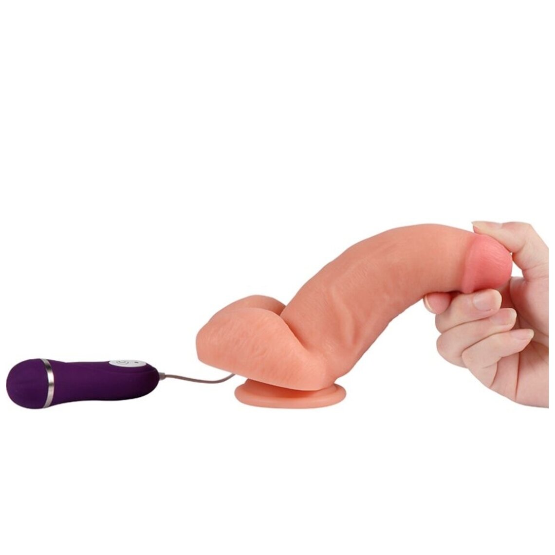 Pénis réaliste avec vibration et ventouse. Longueur de 17 cm. Télécommande filaire.