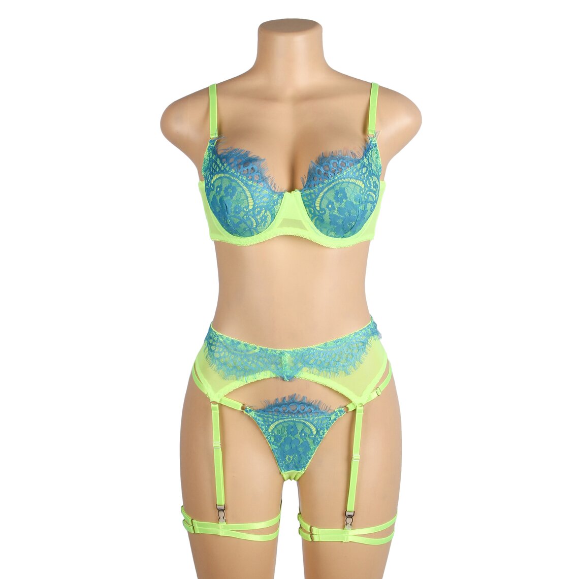 • Subblime - Ensemble bicolore avec porte-jarretelles (Citron vert)