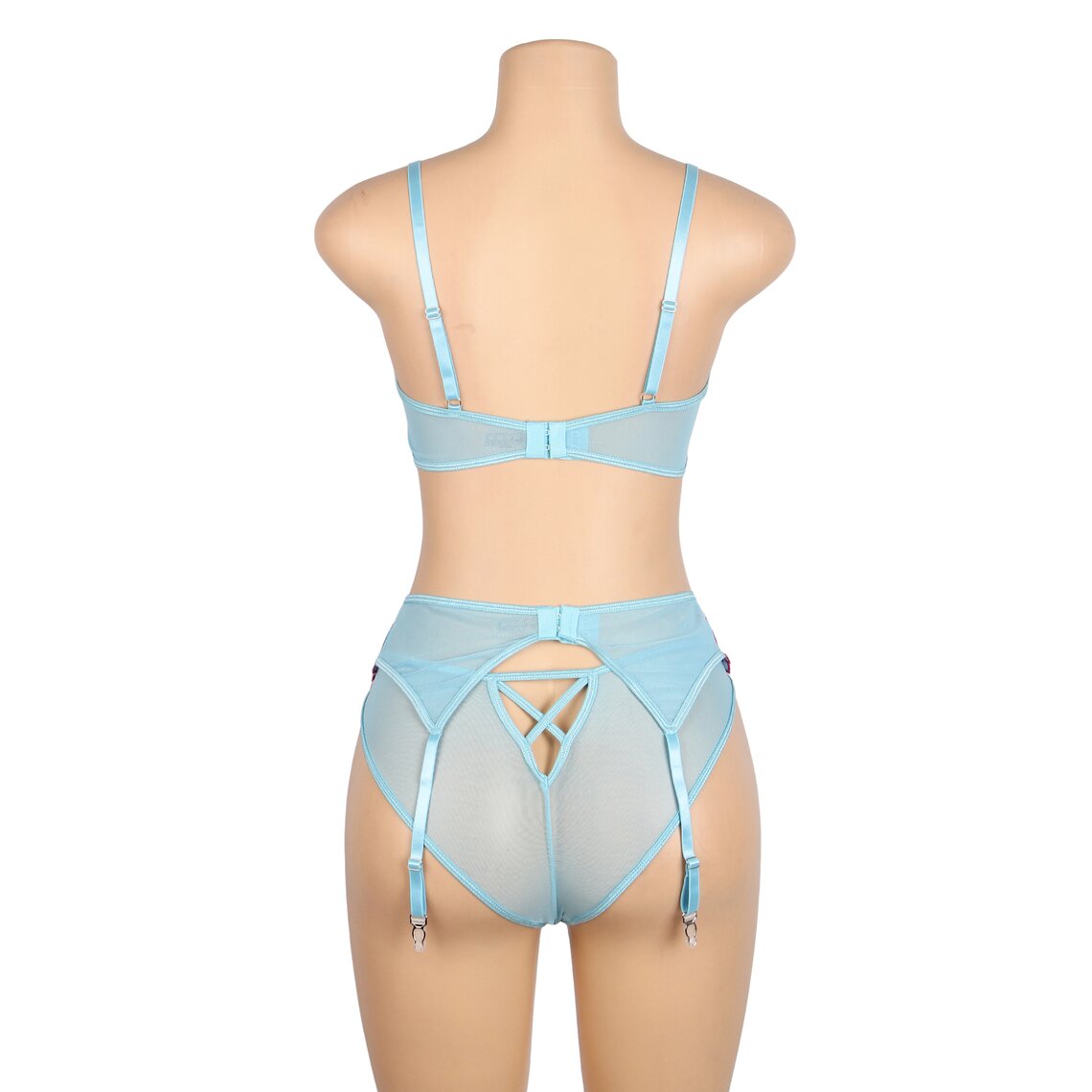 • ◾  Ensemble 3 pièces : Soutien-gorge, porte-jarretelles et culotte assortie.
