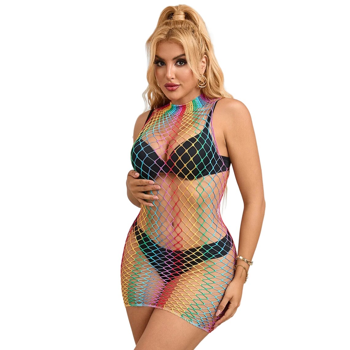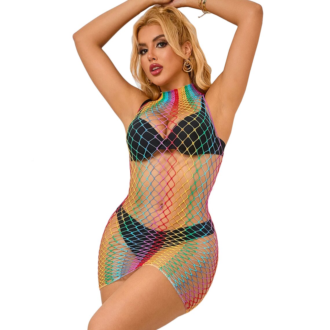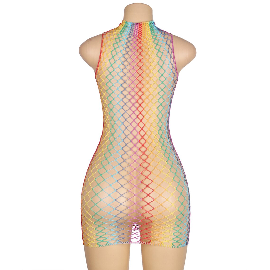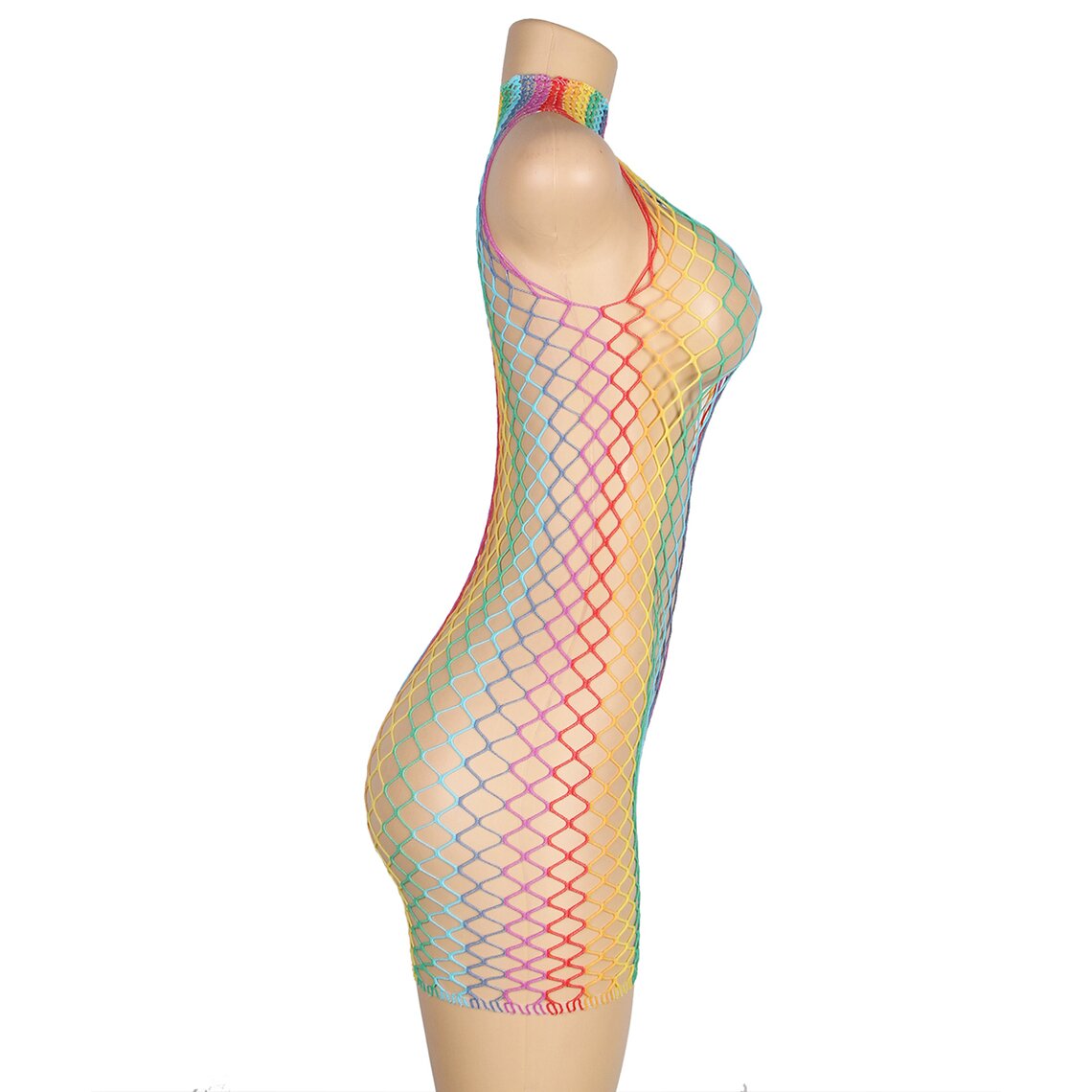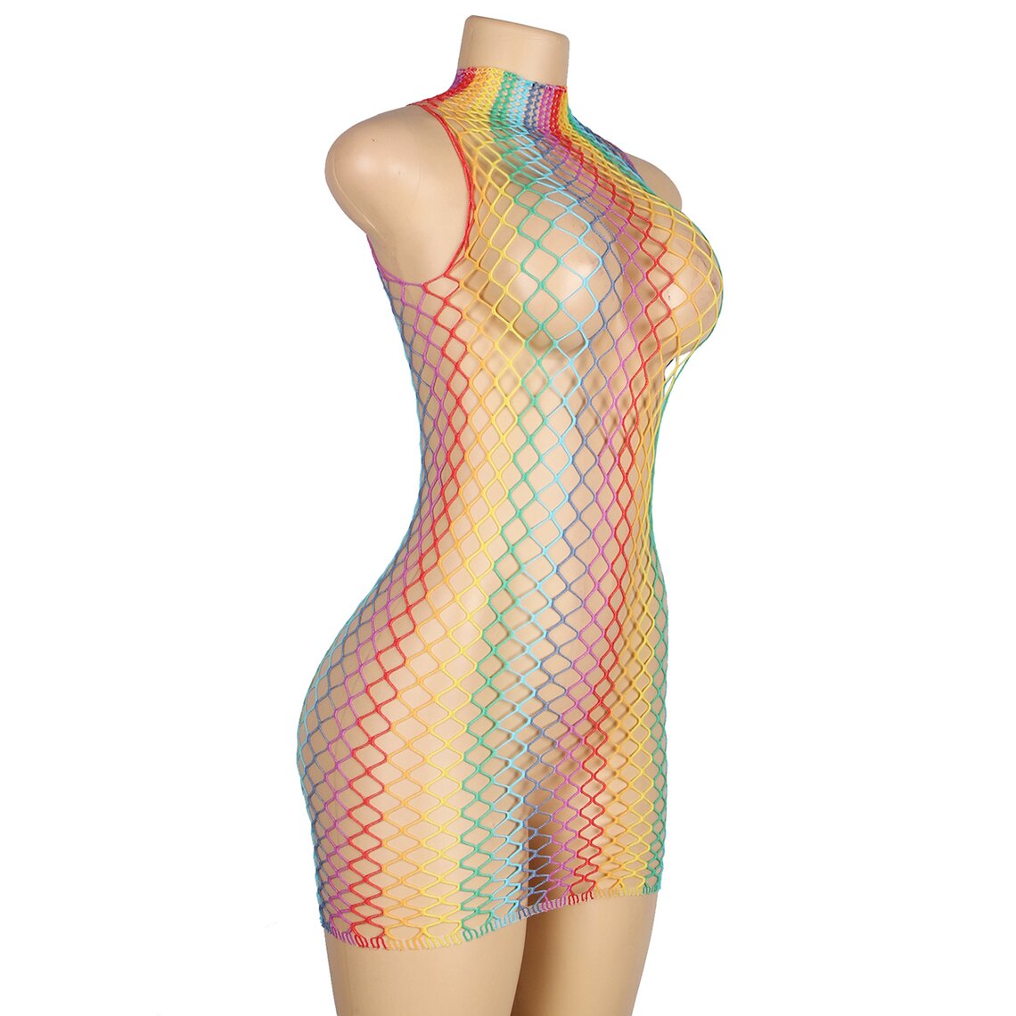 Code SkuSUBBLIME-952433-RAINBOW-HIGH-NECK-SLEEVELESS-FISHNET-DRESS-ONE-SIZE