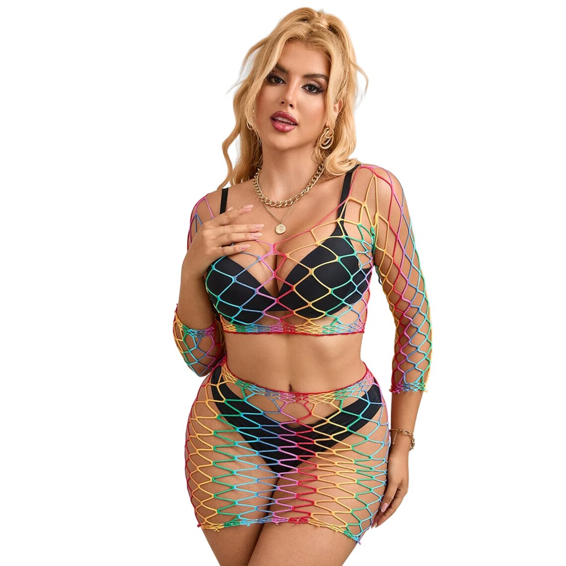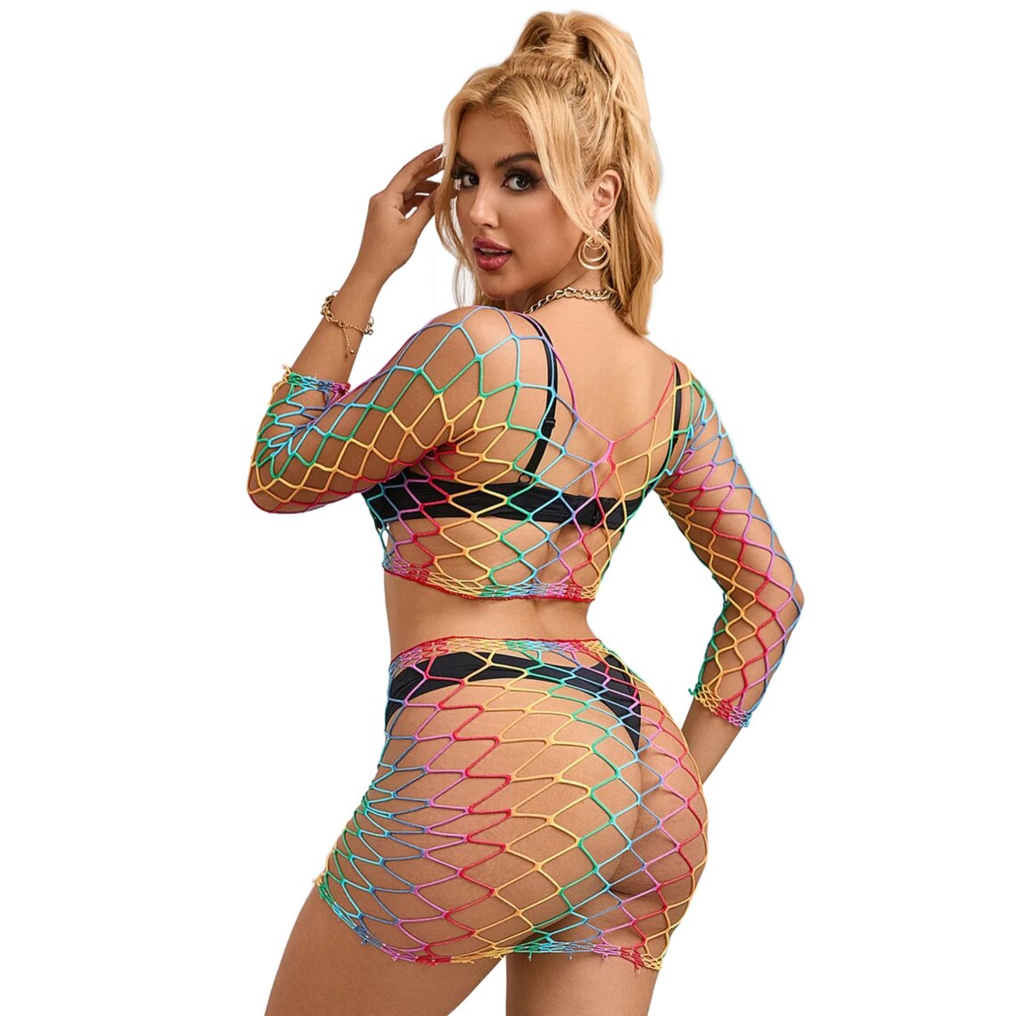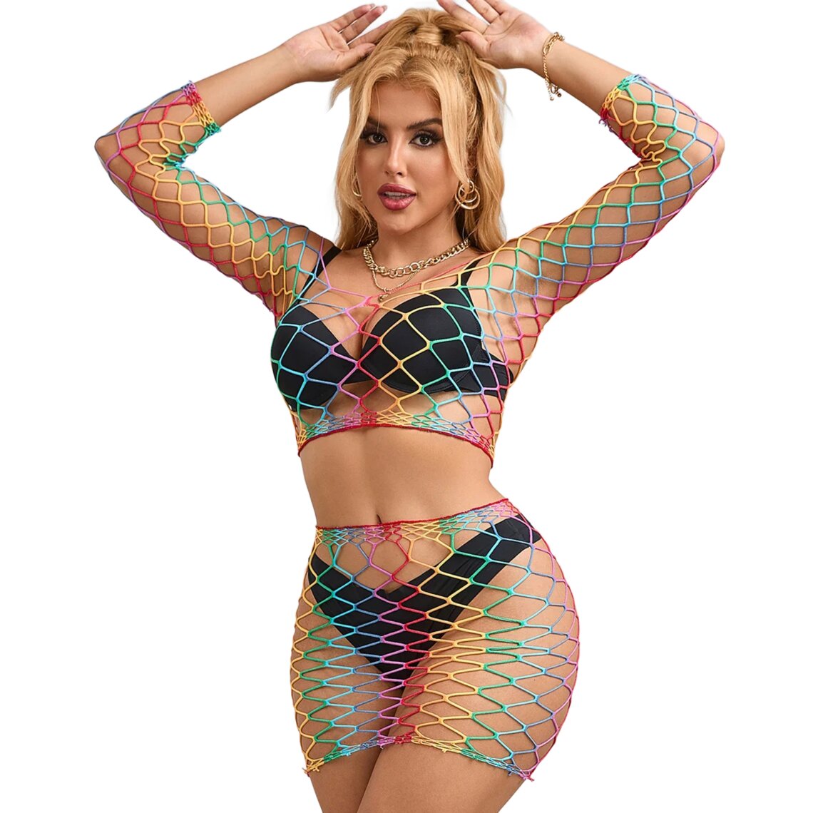 Code SkuSUBBLIME-952440-2PIECE-FISHNET-SET-LONG-SLEEVE-RAINBOW-ONE-SIZE